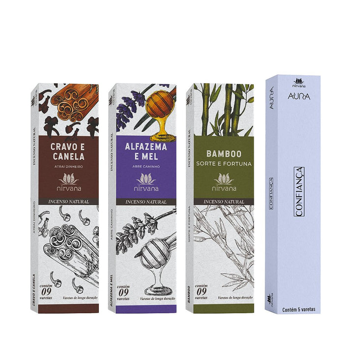 Transforme seu espaço em um ambiente de abundância e crescimento com o Kit de Incensos para Prosperidade da Nirvana Incenso, e sinta os benefícios de um ambiente energizado e repleto de oportunidades.