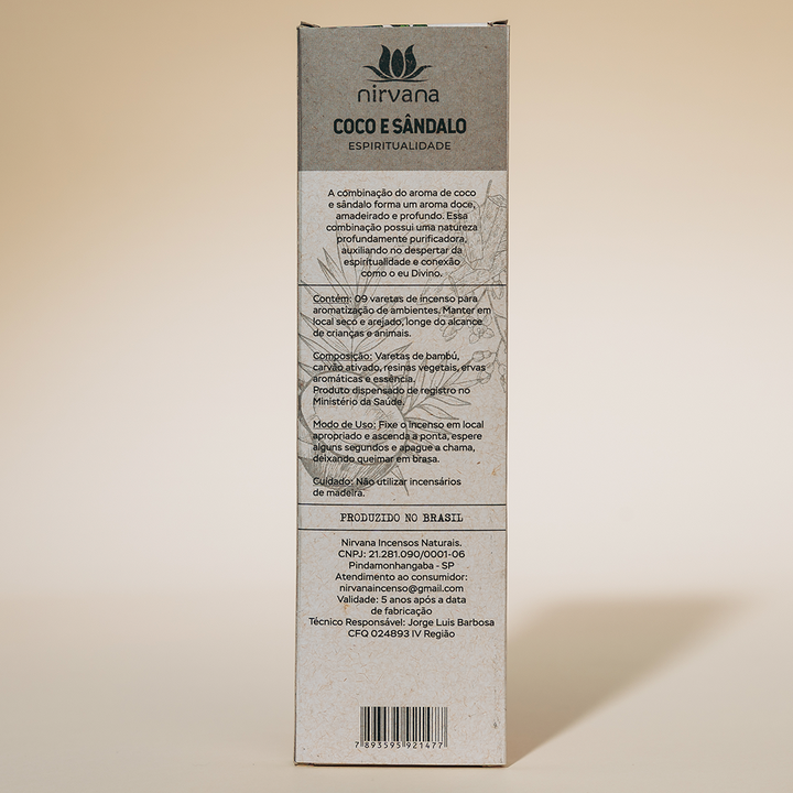 INCENSO NATURAL NIRVANA COCO E SÂNDALO