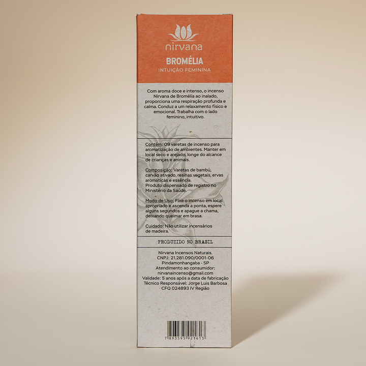 O incenso Nirvana de Bromélia proporciona tranquilidade e relaxamento, sendo um poderoso neutralizador de energias de baixa frequência vibratória.